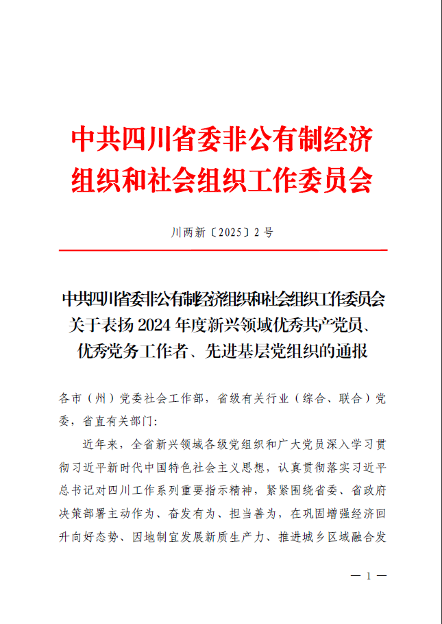 近日,中共四川省委非公有制經(jīng)濟(jì)組織和社會(huì)組織工作委員會(huì)印發(fā)《關(guān)于表揚(yáng)2024年度新興領(lǐng)域優(yōu)秀共產(chǎn)黨員、優(yōu)秀黨務(wù)工作者、先進(jìn)基層黨組織的通報(bào)》,川投能源黨委交大光芒黨總支獲評“四川省2024年度新興領(lǐng)域先進(jìn)基層黨組織”稱號。