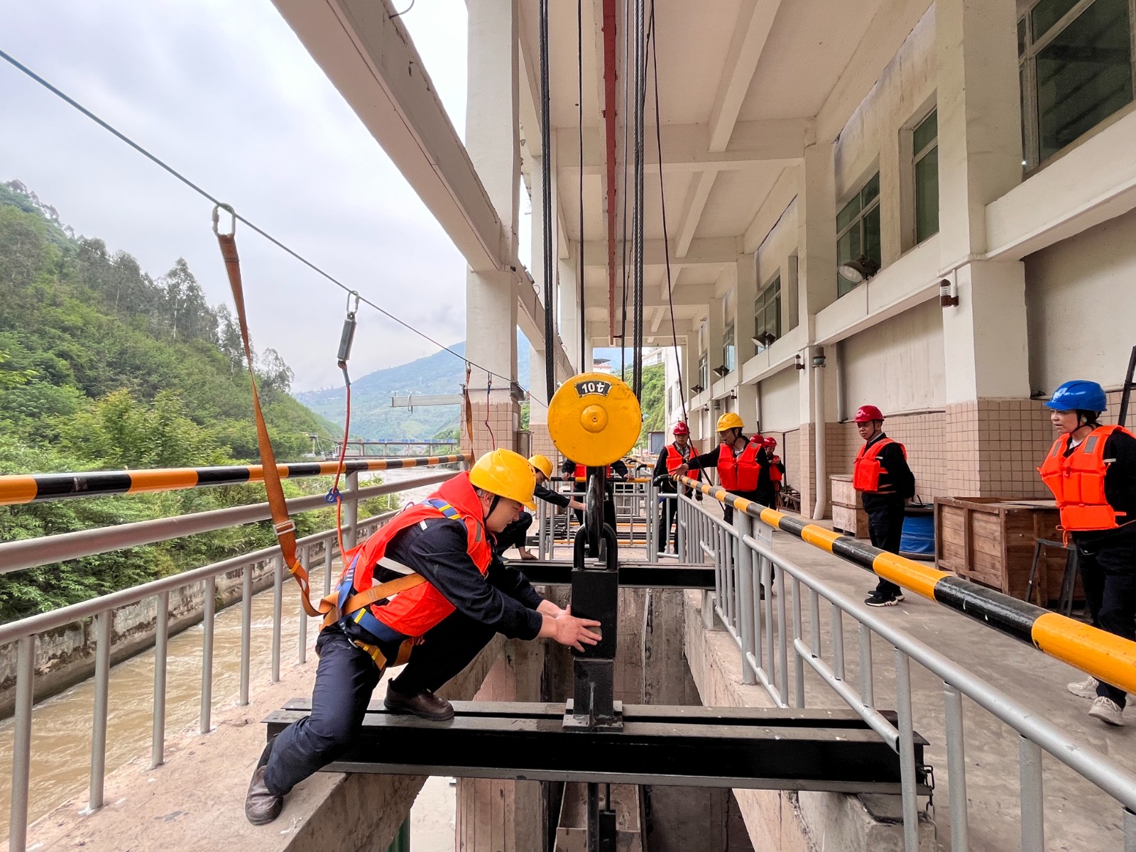 演練前,電廠組織全員學(xué)習(xí)了《玉田電廠2025年防洪度汛應(yīng)急演練方案》,演練于14時(shí)30分正式開(kāi)始,模擬玉田電廠三臺(tái)機(jī)組帶負(fù)荷93MW,越西縣氣象部門發(fā)布暴雨橙色預(yù)警,越西縣降暴雨已持續(xù)數(shù)小時(shí)。上游宏陽(yáng)電站和團(tuán)結(jié)電站準(zhǔn)備停機(jī)避峰已開(kāi)閘放水,尼日河道來(lái)水兇猛,預(yù)計(jì)來(lái)水流量達(dá)到800m3/s,閘首水位1274.5m的緊急情況。當(dāng)值值長(zhǎng)接到汛情后,迅速匯報(bào)防汛辦負(fù)責(zé)人。防汛辦負(fù)責(zé)人要求控制好水位,確保人員安全,并準(zhǔn)備停機(jī)避峰。隨后,險(xiǎn)情立即上報(bào)至防汛總指揮,總指揮接到險(xiǎn)情后,立即啟動(dòng)《玉田電廠防汛搶險(xiǎn)應(yīng)急預(yù)案》,成立現(xiàn)場(chǎng)指揮部,統(tǒng)籌調(diào)度防汛辦公室、安全督導(dǎo)組、應(yīng)急搶險(xiǎn)組、應(yīng)急后勤組等多支隊(duì)伍。大壩值班人員接到通知后拉響防洪警報(bào),開(kāi)啟沖砂閘和泄洪閘緩慢放水,控制水位,同時(shí)做好防汛物資準(zhǔn)備,并啟動(dòng)柴油發(fā)電機(jī)。當(dāng)班值長(zhǎng)向調(diào)度申請(qǐng)停機(jī)避峰,并及時(shí)向相關(guān)部門及下游電站通報(bào)汛情。三臺(tái)機(jī)組停機(jī)后,逐步開(kāi)啟沖砂閘和泄洪閘進(jìn)行泄洪。應(yīng)急搶險(xiǎn)組完成了廠房柴油發(fā)電機(jī)啟動(dòng)試驗(yàn),落下機(jī)組尾水閘門,關(guān)閉主廠房防洪門并堆砌防洪沙袋。運(yùn)行值班人員加強(qiáng)設(shè)備和邊坡巡查。后勤組負(fù)責(zé)人員疏散和后勤保障工作。各小組協(xié)同作戰(zhàn),演練于15時(shí)49分圓滿結(jié)束。