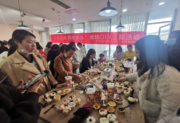 活動現(xiàn)場,烘焙師對蛋糕制作流程和重點進行了詳細講解,女職工分成幾個小組,選擇各自喜歡的杯子蛋糕或6寸蛋糕,在烘焙師的專業(yè)演示和指導下,在小組成員間的相互配合下,充分發(fā)揮著自己的想象力和創(chuàng)作力DIY自己的蛋糕作品。一場活動下來,一個個別出心裁、造型別致的自制蛋糕紛紛亮相,活動現(xiàn)場洋溢著節(jié)日的喜悅。