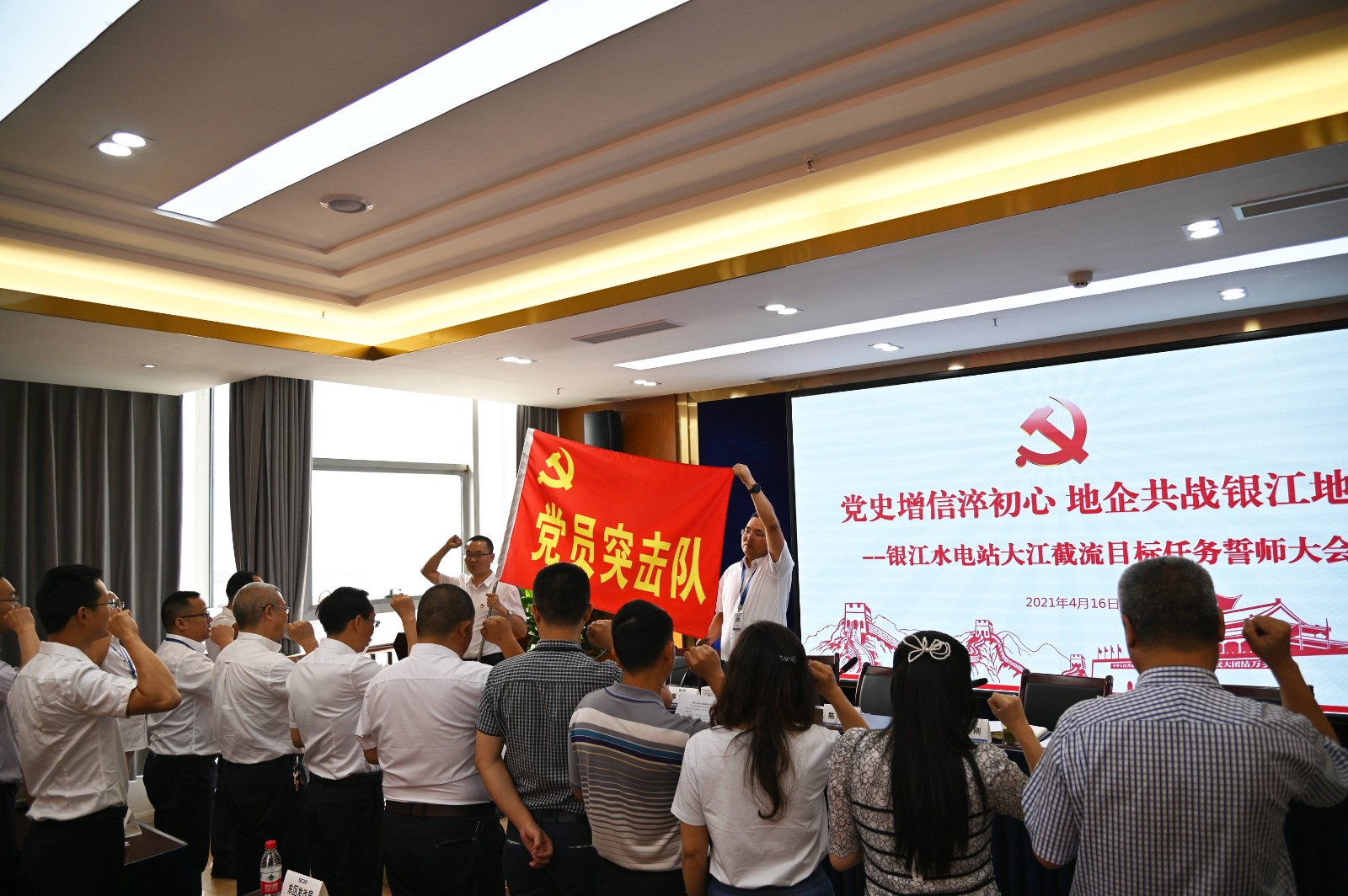 會上,全體參會人員共同學(xué)習(xí)了市委書記張正紅在市級領(lǐng)導(dǎo)干部和縣級主要負(fù)責(zé)同志讀書班暨市委理論學(xué)習(xí)中心組專題學(xué)習(xí)(擴(kuò)大)會議上的講話精神;蔡承德宣讀了銀江水電站項目建設(shè)黨員突擊隊人員名單;徐孝剛與陳康共同向黨員突擊隊授旗并簽訂目標(biāo)承諾書;全體突擊隊隊員在隊旗前進(jìn)行了莊重宣誓。