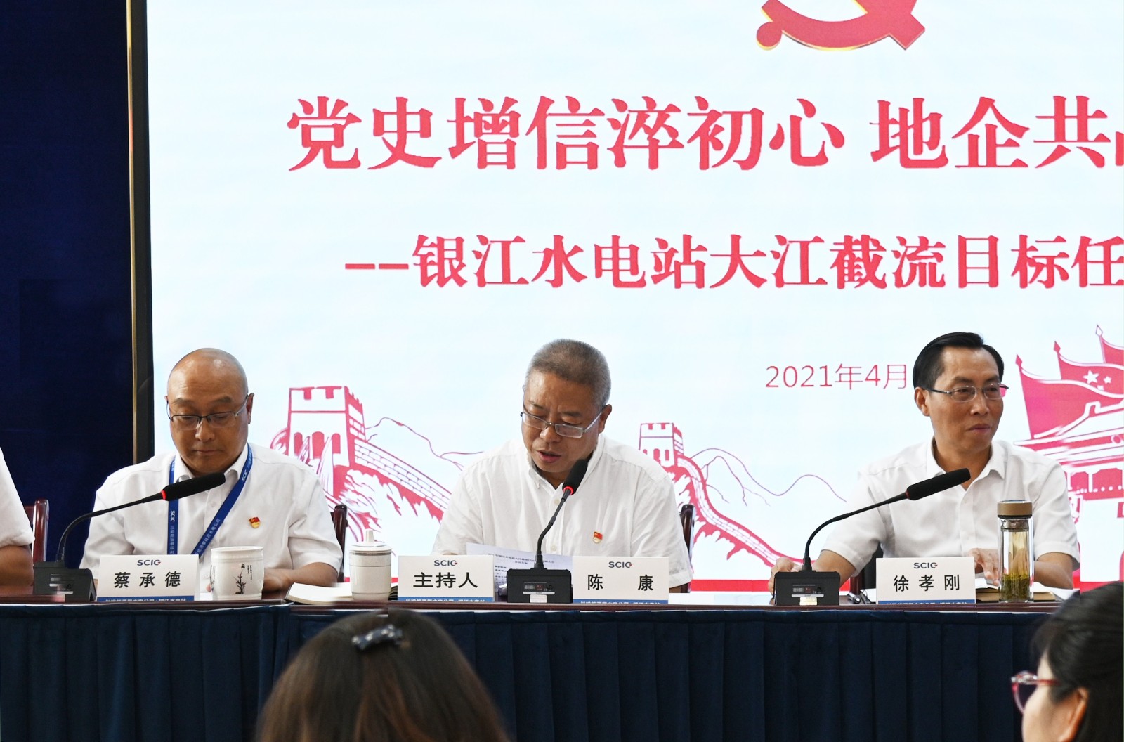會議由東區(qū)區(qū)委常委、政法委書記、銀江水電站項目推進(jìn)領(lǐng)導(dǎo)小組常務(wù)副組長陳康主持,川投能源副總經(jīng)理、攀水電公司黨總支書記、董事長徐孝剛,黨總支副書記、總經(jīng)理蔡承德,副總經(jīng)理周軍及公司黨員代表和東區(qū)政府相關(guān)部門等共計40 余人參會。