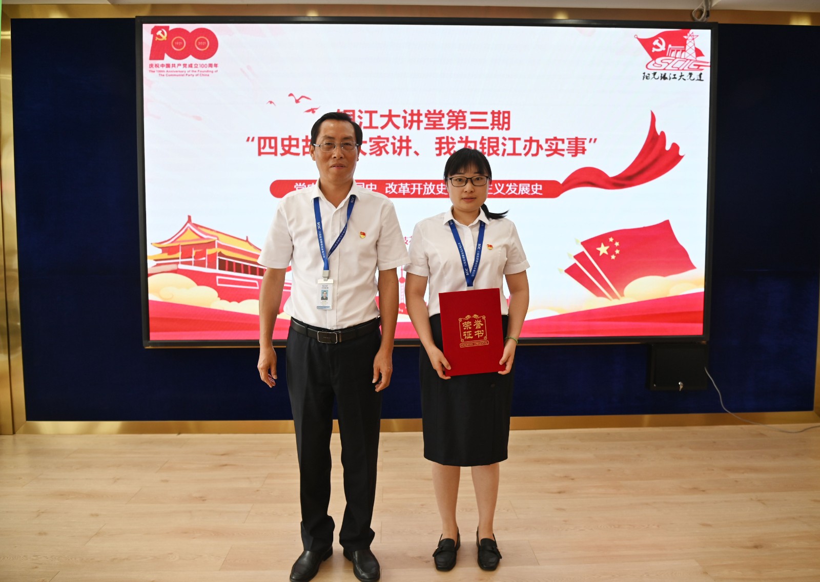 公司黨總支委員、董事會(huì)秘書、工會(huì)主席鄧勇在開場(chǎng)詞中講到,開展“四史故事大家講、我為銀江辦實(shí)事”微黨課演講活動(dòng),是公司“陽(yáng)光銀江大黨建”、《建黨百年獻(xiàn)禮方案》及支部聯(lián)建示范基地創(chuàng)建的工作安排,讓廣大黨員干部走上講臺(tái),以小故事傳遞大能量,小切口展現(xiàn)大主題;結(jié)合黨史學(xué)習(xí)教育和“四史”學(xué)習(xí)要求,落實(shí)徐孝剛書記“為工程一線服務(wù),為銀江工程辦實(shí)事”的指示要求;結(jié)合工作實(shí)際,分享心得感悟,倡導(dǎo)人人為推進(jìn)工程建設(shè)和公司發(fā)展辦實(shí)事。