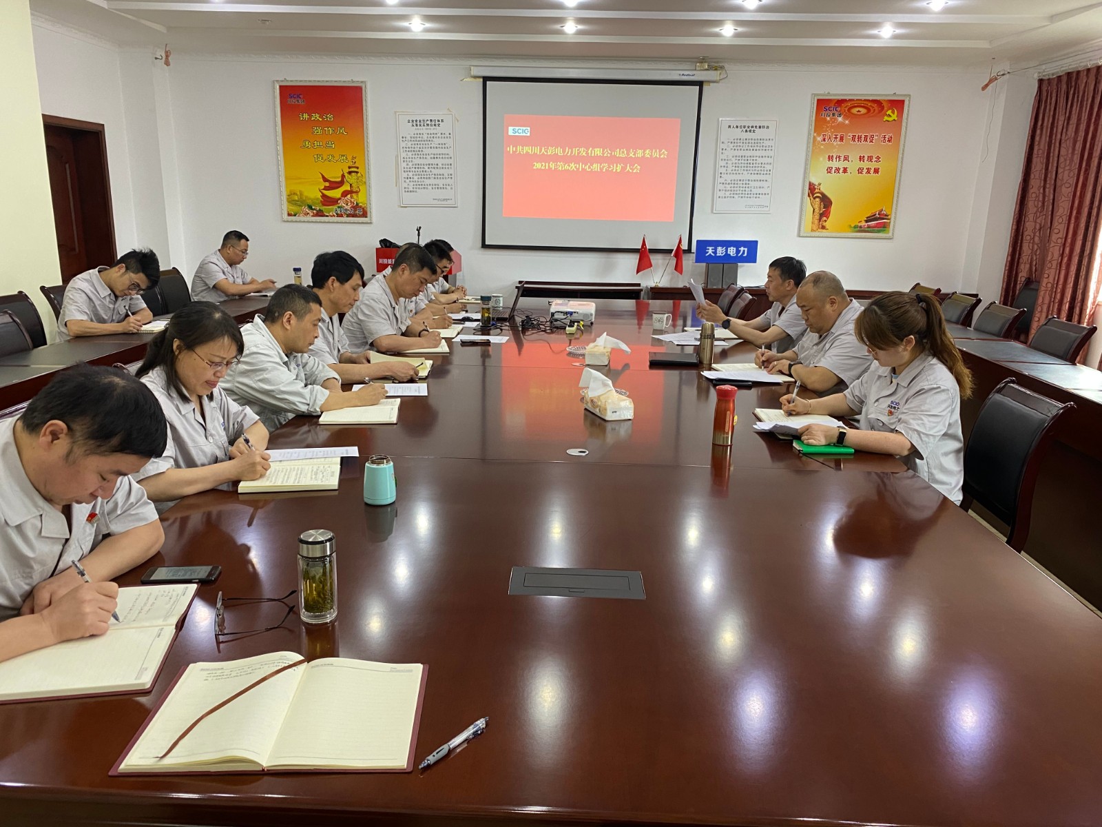 6月8日上午,川投能源天彭電力黨總支在公司二樓會(huì)議室召開(kāi)2021年第6次中心組學(xué)習(xí)(擴(kuò)大)會(huì),公司領(lǐng)導(dǎo)、黨員干部和關(guān)鍵崗位人員參加會(huì)議,會(huì)議由黨總支書(shū)記、總經(jīng)理陳忠主持。