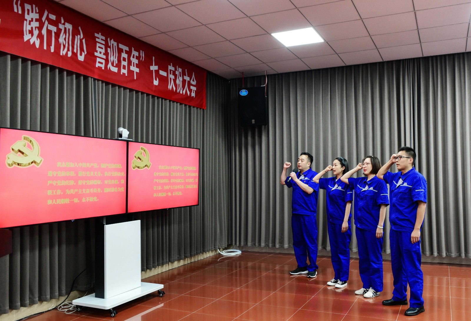 慶祝大會在雄壯的國歌聲中正式開始。大會首先由公司黨委書記、董事長楊濤帶領三名新黨員在鮮紅的黨旗下進行莊嚴的入黨宣誓,參會的全體黨員也和新黨員一起重溫了入黨誓詞。時刻提醒我們要始終保持共產黨員不忘初心、牢記使命的優(yōu)秀品質。