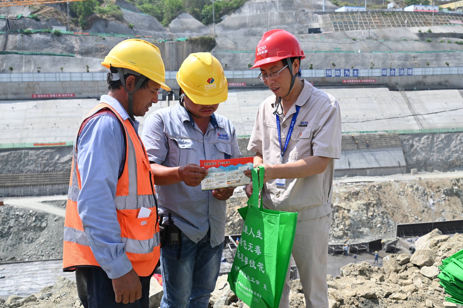 活動結(jié)束后,川能能源副總經(jīng)理、攀水電公司黨總支書記、董事長徐孝剛帶領(lǐng)大家到施工現(xiàn)場,為一線建設(shè)者發(fā)放禁毒宣傳資料,現(xiàn)場講解禁毒知識,希望每一位職工與家人都要珍愛生命、遠(yuǎn)離毒品,并要求在隨后公司開展的安全知識競賽中增加禁毒知識,進(jìn)一步增強(qiáng)公司及參建單位全體職工的識毒、防毒、拒毒的意識和能力,為構(gòu)建和諧無毒工地奠定基礎(chǔ)。