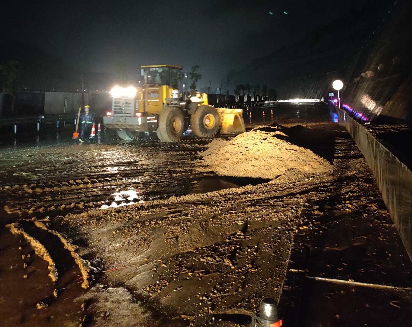 7月5日17時40分,攀枝花市地災辦、防汛辦、氣象臺聯(lián)合發(fā)布山洪和地質災害預警信息,公司安全環(huán)保部第一時間傳達預警信息,當晚公司防汛值班領導川投能源副總經(jīng)理、攀水電公司黨總支書記、董事長徐孝剛帶領值班人員從8時到11時進行防汛值班檢查,對各值班點,重要部位巡視,當晚21時45分,22時15分攀枝花氣象臺分別發(fā)布雷電黃色預警、暴雨黃色預警。攀水電公司組織各參建單位按照防洪度汛工作要求,冒雨開展雨中巡查,對渣場、導流明渠,銀江大橋、砂石拌和系統(tǒng)等重要部位及施工區(qū)域進行全面排查。當晚23點左右,值班人員雨中巡查,發(fā)現(xiàn)暴雨導致轉沱溝邊坡上方工業(yè)園區(qū)內(nèi)部分棄渣被沖刷到G227國道,嚴重影響道路的正常通行,本著國企社會責任,公司防汛防災帶班領導徐孝剛立即安排二灘監(jiān)理、葛洲壩路橋組織機械設備及人員進行清理,于次日凌晨3點左右清理完畢,確保了G227國道的正常通行。