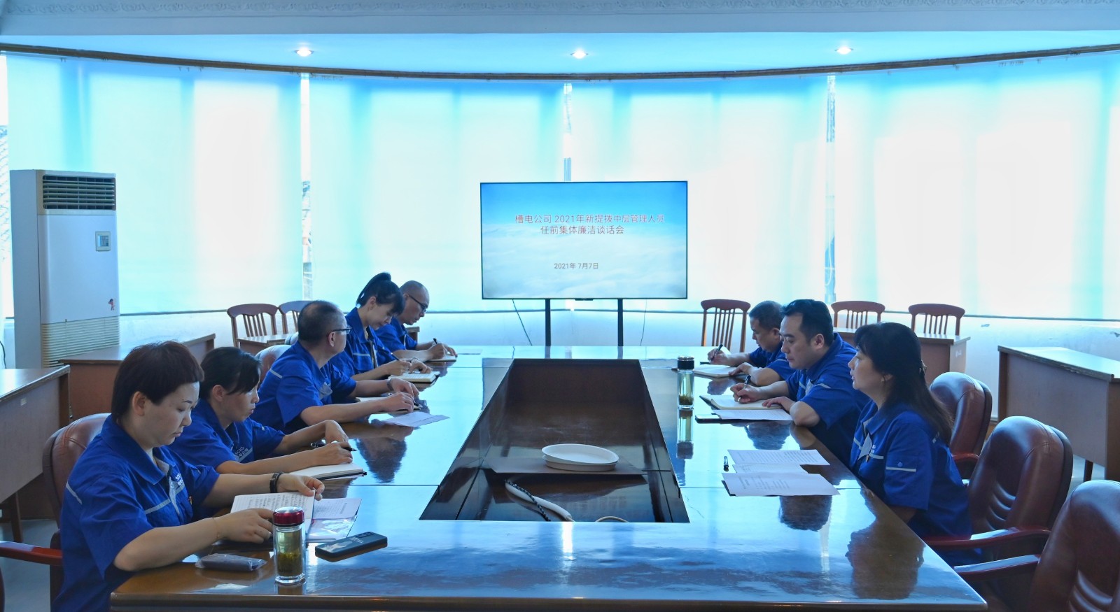 7月7日,槽漁灘公司召開新提拔中層管理人員任前集體廉潔談話會。公司黨委書記、董事長楊濤、公司總經(jīng)理何光富、公司紀(jì)委書記謝愛東對2021年競聘上崗的5位部門正、副職管理人員進行了任前廉潔談話。