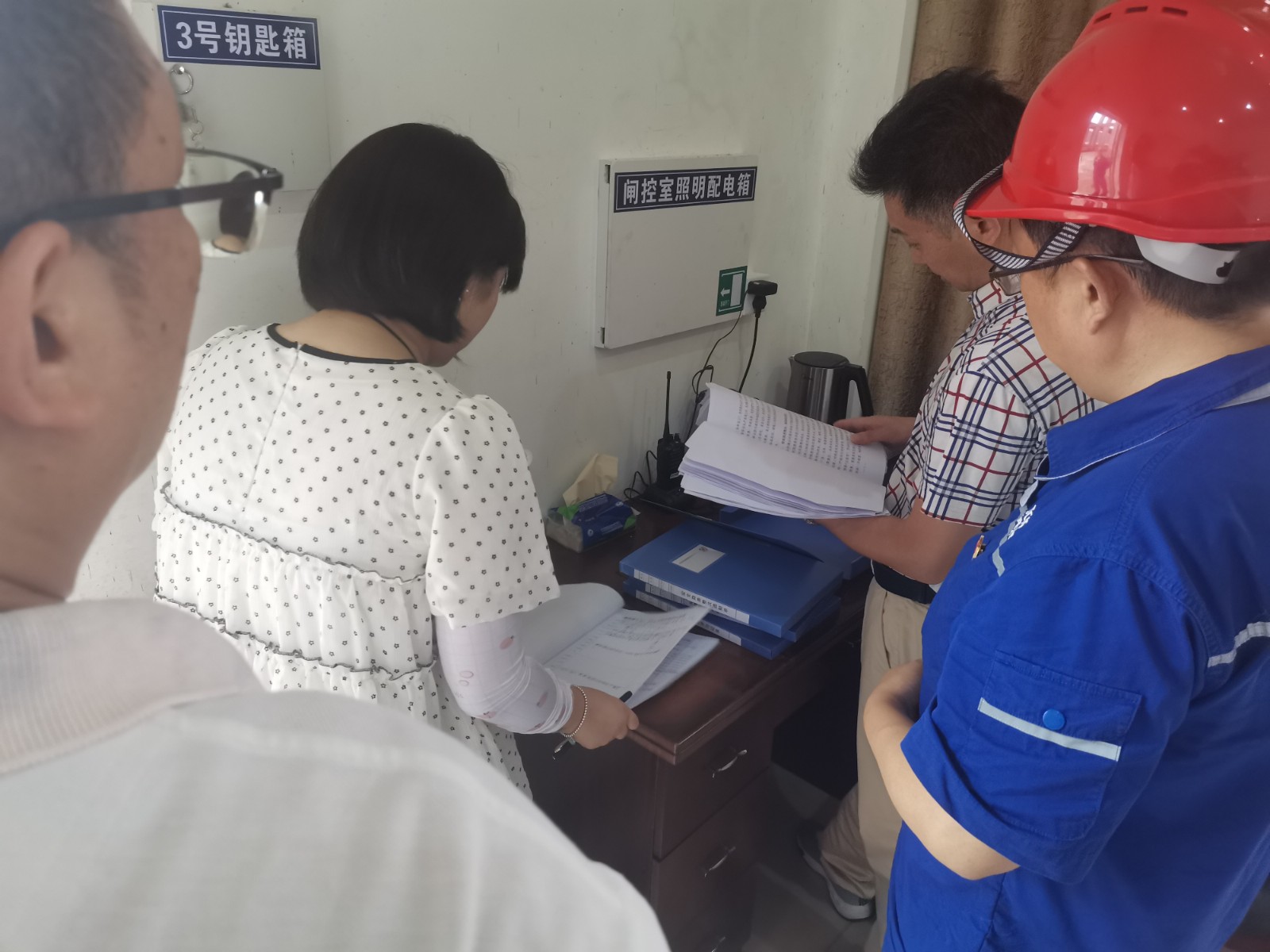 督查組一行在電廠大壩現(xiàn)場(chǎng)聽(tīng)取了公司副總經(jīng)理、電廠廠長(zhǎng)蔣玉兵就槽漁灘電廠防洪度汛工作的安排、部署及落實(shí)情況匯報(bào);隨后對(duì)槽漁灘電廠防洪物質(zhì)的儲(chǔ)備情況以及防洪預(yù)案、防洪值班情況、隱患排查、上級(jí)防洪文件的傳達(dá)學(xué)習(xí)情況等資料進(jìn)行了仔細(xì)檢查。