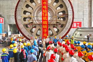 【攀水電公司】銀江水電站首臺機(jī)組轉(zhuǎn)子順利吊裝