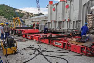 【攀水電公司】銀江水電站1號(hào)主變壓器本體順利安裝就位