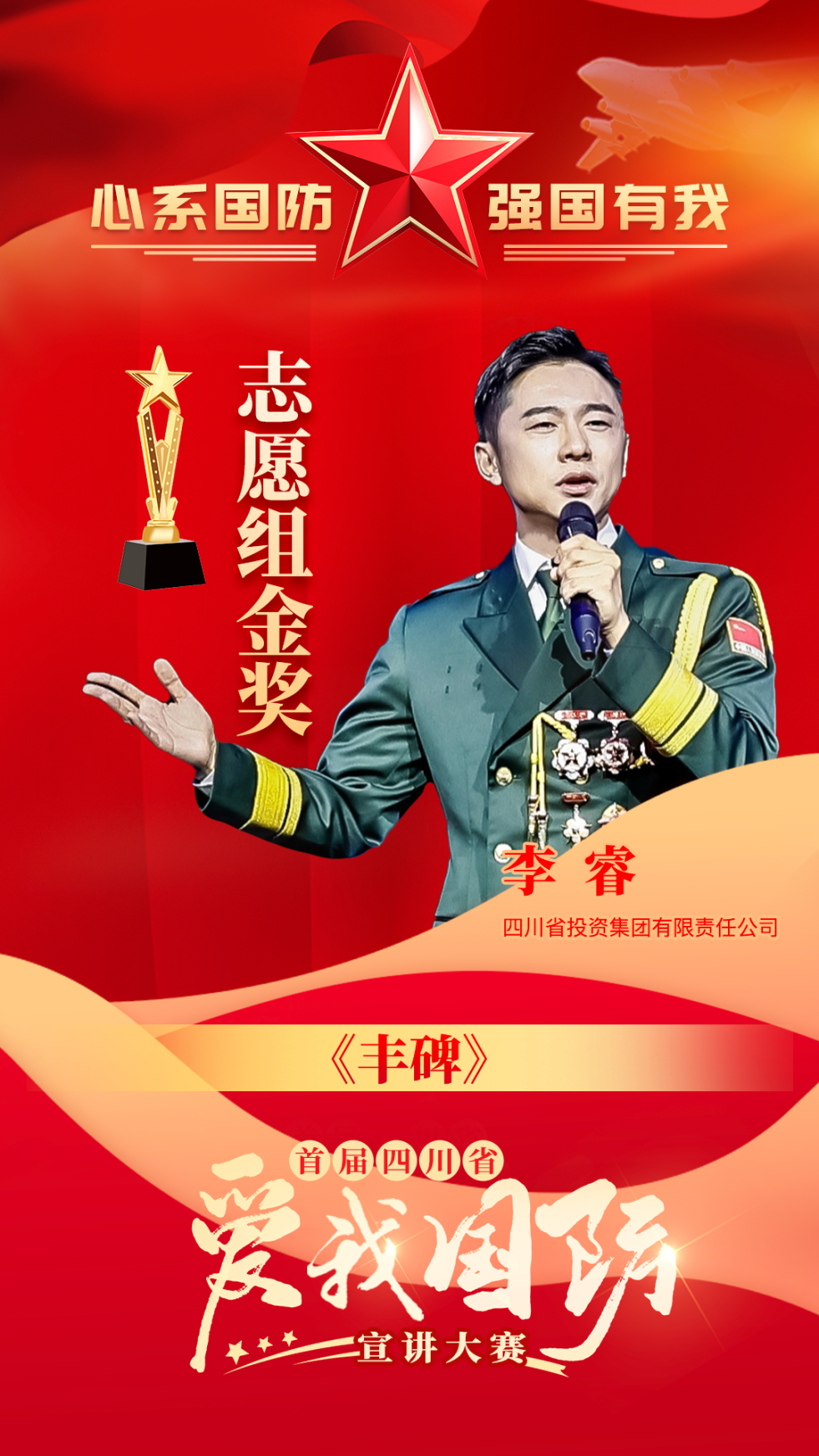 講好新時(shí)代國(guó)防故事、傳播新時(shí)代國(guó)防聲音。7月8日,首屆四川省“愛我國(guó)防”宣講大賽成果展演在四川廣播電視臺(tái)精彩上演,來自全省21個(gè)市州和省直有關(guān)部門的170名選手代表參與展演,展示大賽成果。現(xiàn)場(chǎng)揭曉了本屆大賽的金獎(jiǎng)和銀獎(jiǎng)獲得者,其中,川投能源選手李睿榮獲金獎(jiǎng)!
