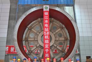 【攀水電】川投能源銀江水電站5號機組轉子與定子吊裝成功